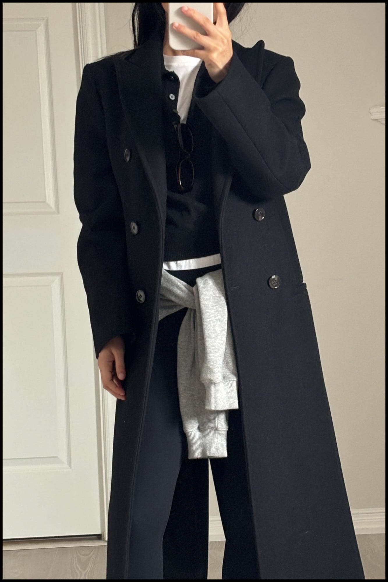 “I’m all about investing in coats and knits. Living in Colorado, the coat is the outfit from December to April. My 100% wool Max Mara camel coat and black Sport Max robe coat are in heavy rotation for most of the year. They’re so luxe and warm, and the quality is unmatched—I don’t mind spending because I know I’ll have and wear them for years and years. Lisa Yang cashmere sweaters are also a splurge but are my absolute favorite. They’re total wardrobe workhorses that go from a cozy work-from-home day to a cross-country flight to dinner out with my girlfriends.