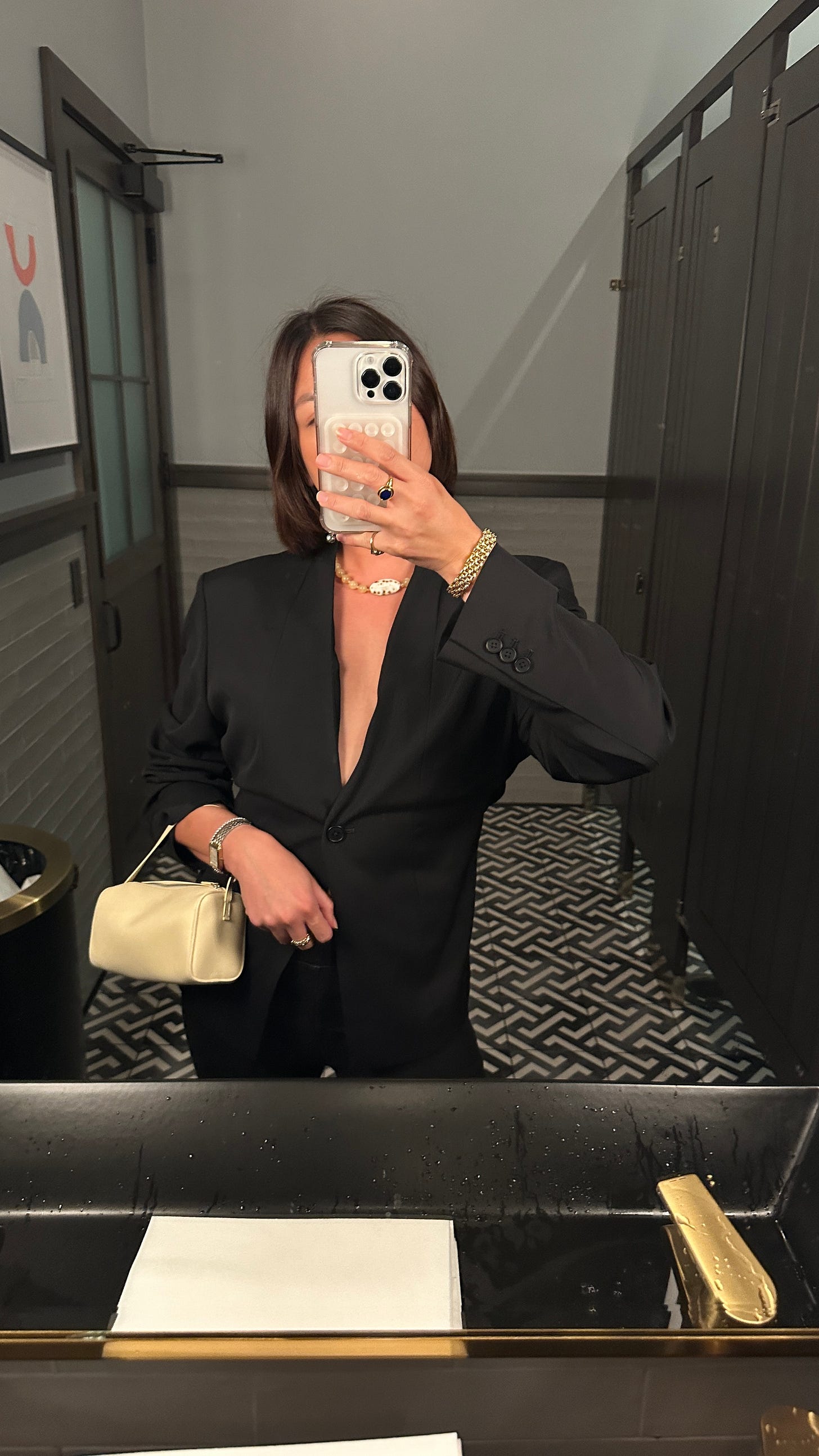 My outerwear collection is my pride and joy, slowly curated over the years. Some of my favorite pieces include this vintage suede men’s trucker I found via Trash Panic and a vintage Ralph Lauren men’s tuxedo jacket spotted at an antique store in Healdsburg. I can throw them over anything for an instant outfit. For investment pieces, Toteme coats offer incredible value — especially my forever piece: a double-breasted black wool coat that grazes the ankle, channeling MK&A vibes.