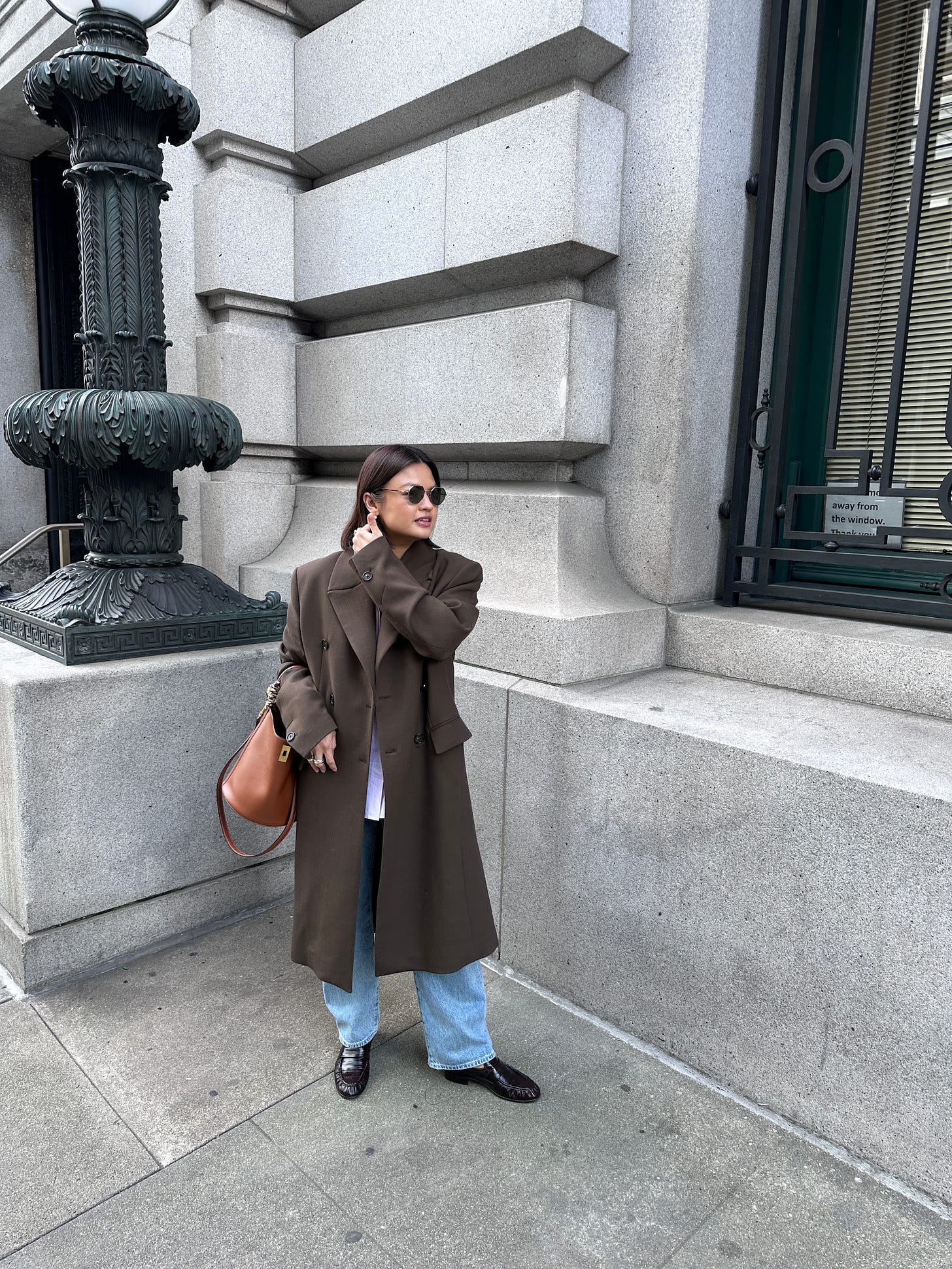 San Francisco gets stereotyped for its tech uniform of Patagonia vests and Allbirds, but venture beyond the Marina and you’ll find some seriously inspired style. Just a few weeks ago on Fillmore, I spotted this woman in an ankle-length burgundy leather coat with a newsboy cap that stopped me in my tracks. Another standout: a girl rocking an oversized suede blazer with wide-leg jeans, retro oval sunglasses, and this effortlessly chic low bun.